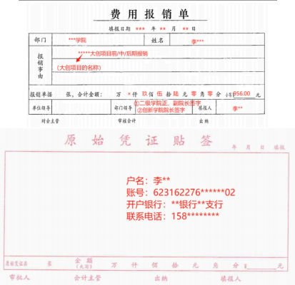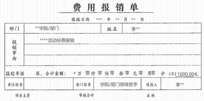 填写《费用报销单》,附上相关发票、钉钉审批表(前/中/后期报销申请)(注:部门领导需要两个领导签字,一个是二级学院的正、副院长,一个是创新学院的院长签字)。